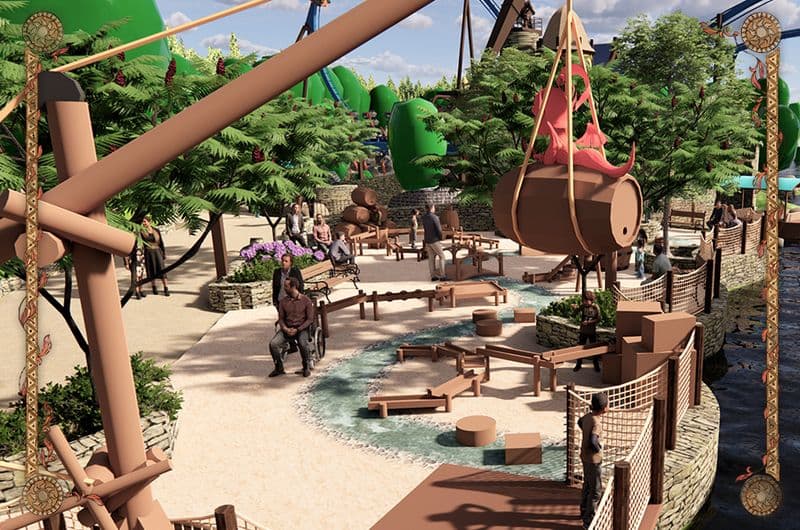 Notamment le Sparky’s Splash Dock, situé vers le restaurant The Flaming Feather. Prenant les traits du quai de ravitaillement de la taverne, cette zone proposera de nombreux jeux aquatiques en compagnie de l’adorable Dragon Sparky. Les concepteurs ont fait en sorte d’avoir la meilleure accessibilité possible, en rendant disponible tous les éléments de jeu depuis un fauteuil roulant par exemple !