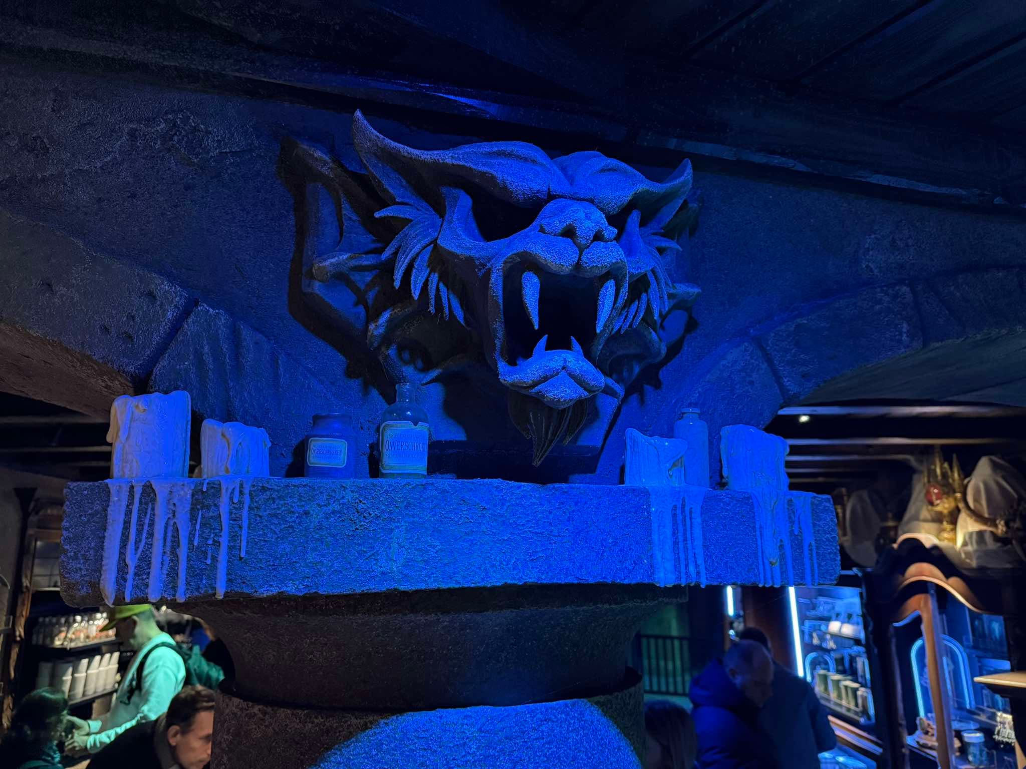 Chaque groupe de 18 personnes est dirigé vers un très sombre couloir pour attendre devant une porte donnant accès à la chapelle. Cela semble insignifiant, mais la tension monte réellement durant cette attente, rappelant les horrifiques maisons hantées que d’autres parcs proposent. Finalement, la porte s’ouvre et on découvre la superbe salle principale, dans un émoi général.