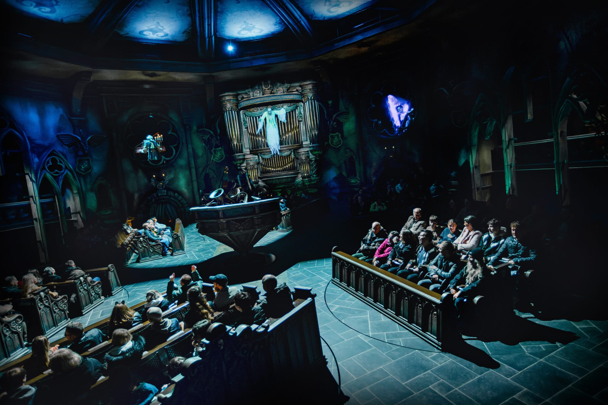 Ces nombreux mouvements à toutes les altitudes permettent d’apercevoir peu à peu les musiciens de l’orchestre et les éléments de décor variés, mais il est impossible de tout voir en un seul tour. Une raison de plus pour refaire l’attraction !