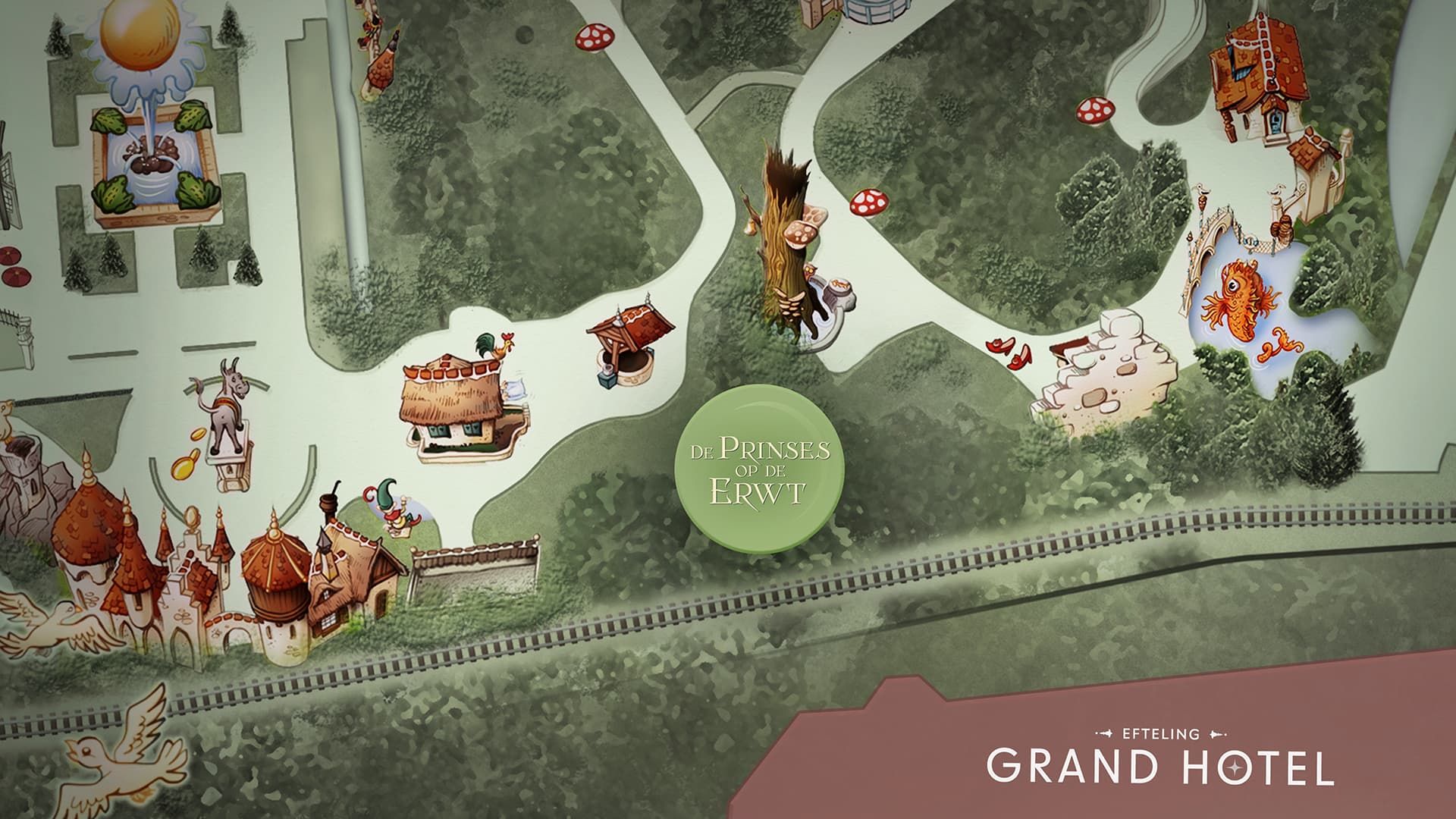 Ce conte, ayant rapport avec le sommeil se prête justement parfaitement avec sa localisation au sein du Bois des Contes ! En effet, situé entre le Roi Troll et le puits de Dame Holle, il aura pour toile de fond l’Efteling Grand Hotel, dont l’ouverture est espérée également pour 2025 ! Les travaux de la Princesse au Petit Pois débuteront cet automne.