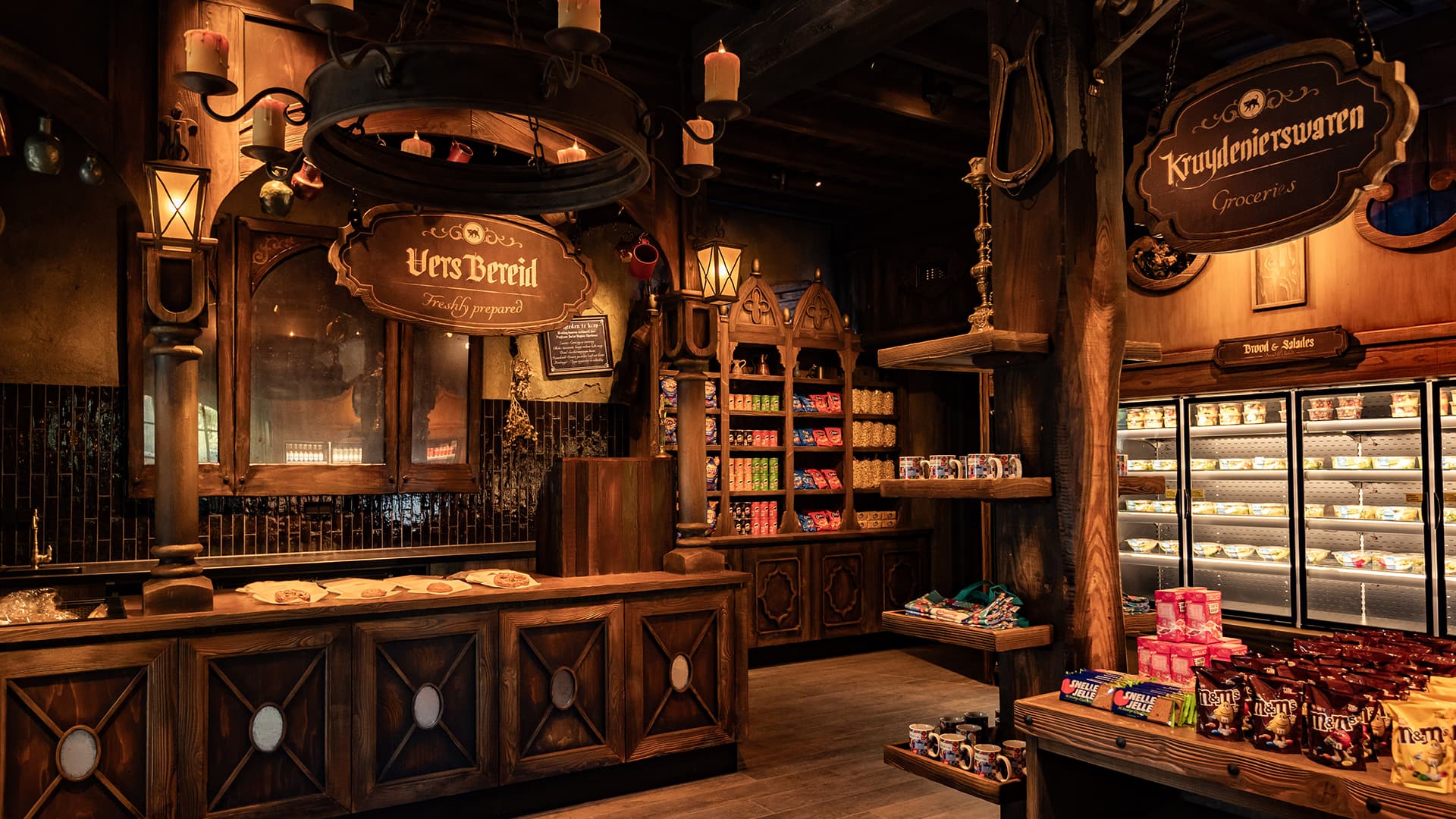 Le projet a coûté 35 millions d’euros pour l’attraction et sa zone thématique, comportant des points de restauration (In den Swarte Kat, ouvert durant l’été 2023 et ‘t Koetshuys), une boutique et des toilettes thématisées.