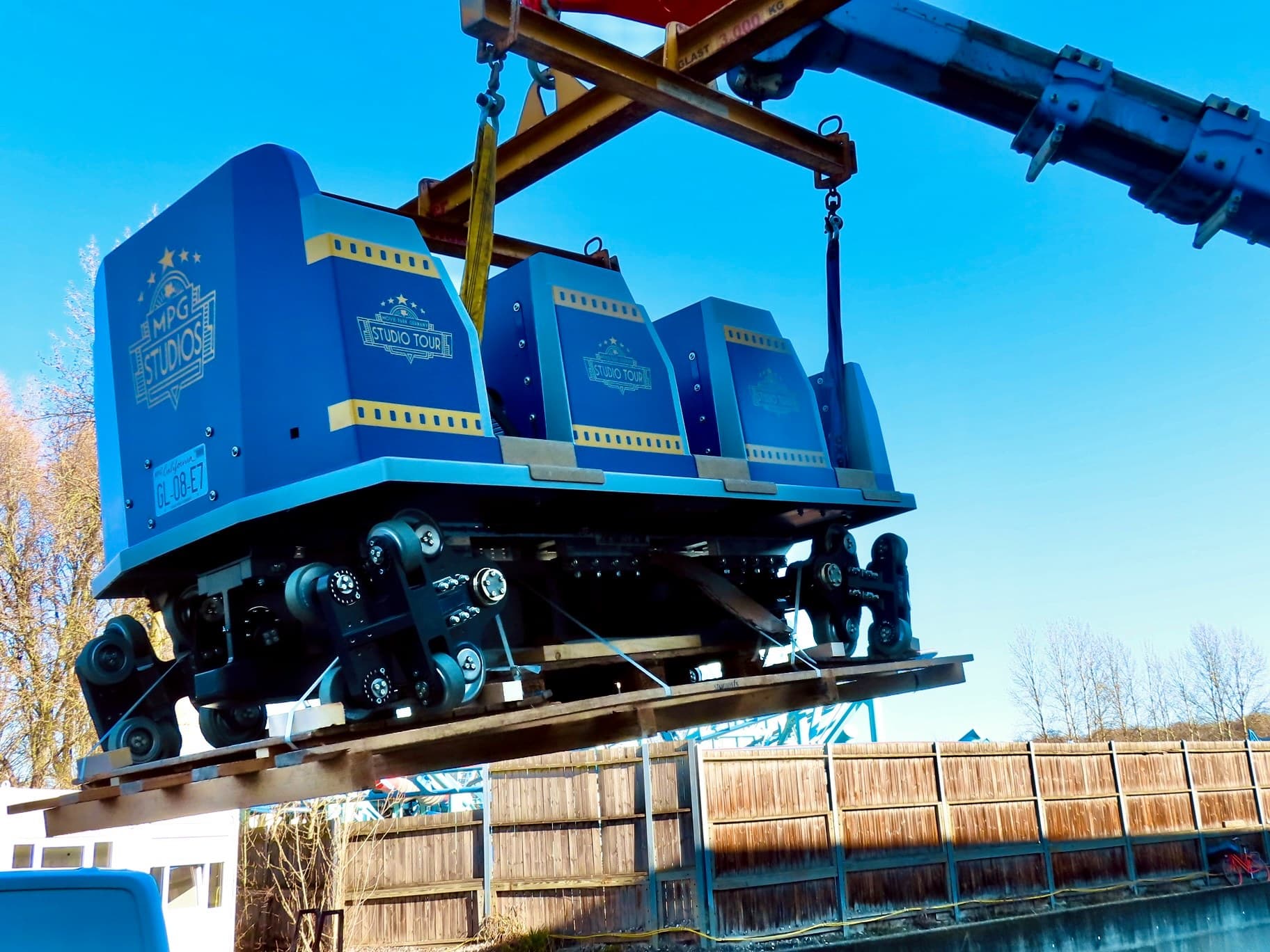 Le parcours de l’attraction est ponctué par un passage extérieur, qui a pris lui aussi forme au fur et à mesure de l’avancée des travaux. Sur ses réseaux sociaux, la destination a également dévoilé le design des véhicules, qui reprennent le logo de l’attraction.