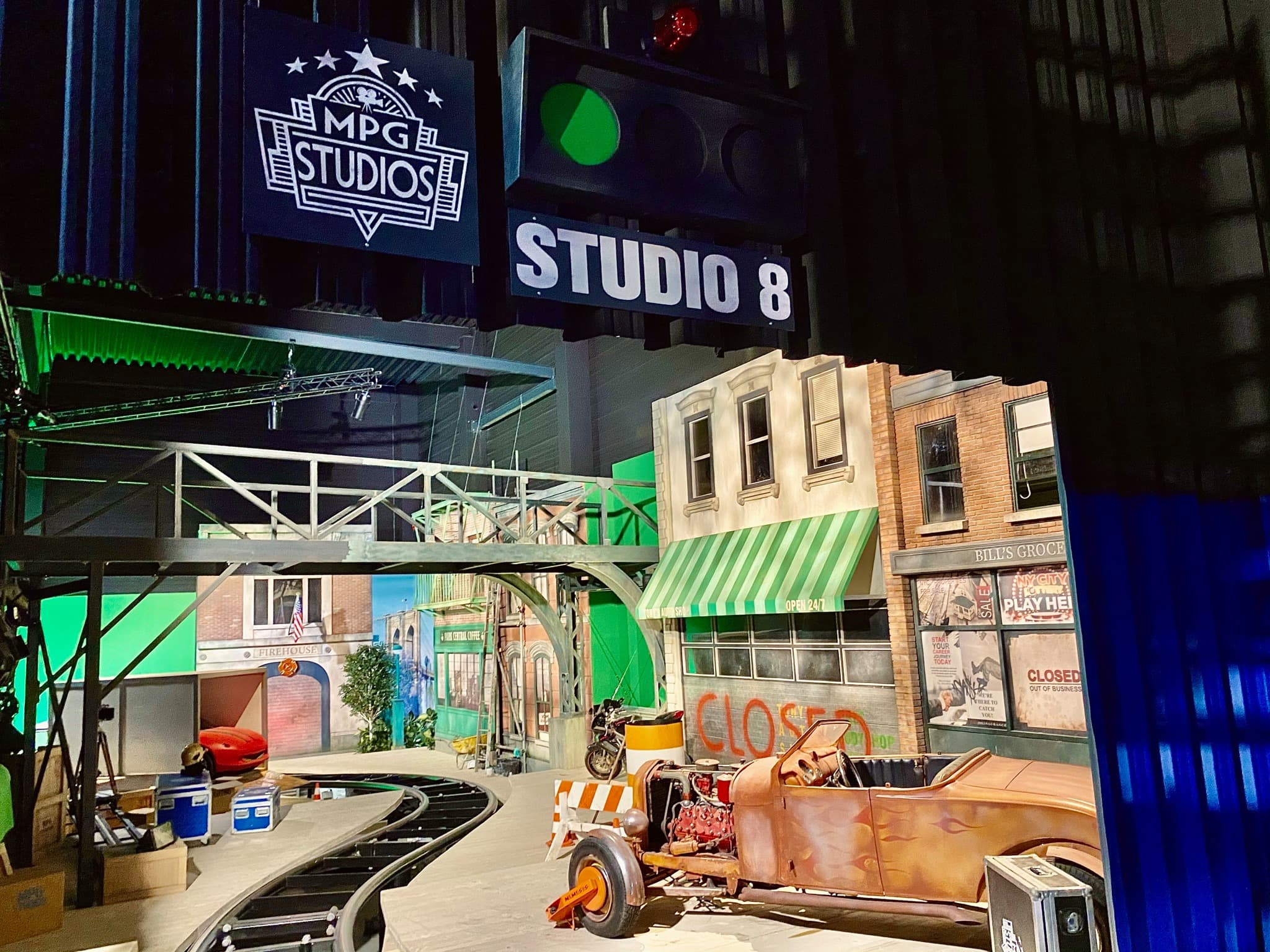 Après avoir franchi la luxueuse porte inspirée des véritables studios hollywoodiens que les équipes du parc sont allées étudier, les visiteurs partent pour une visite rendant hommage aux différents univers mythiques du cinéma. De nombreuses références à des attractions passées du parc se glisseront également dans les décors, comme l’ancien dark ride Gremlins Invasion (remplacé aujourd’hui par Van Helsing’s Factory), ou le coaster Cop Car Chase disparu en 2006.