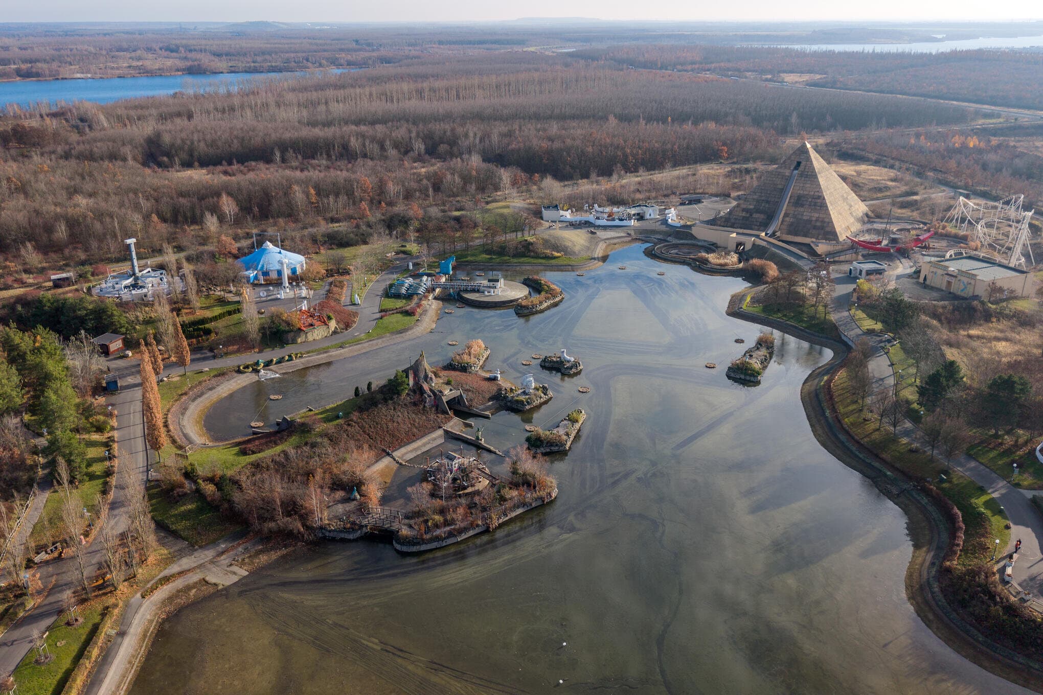 Ouvert en 2003 sur une ancienne mine de lignite, Belantis avait à l’origine pour concept ambitieux de mettre en scène les civilisations disparues. Vu du ciel, le parc formait même une carte du monde ! Malgré une bonne fréquentation à ses débuts, le parc n’est jamais parvenu à se développer pleinement. Même Parques Reunidos, propriétaire depuis 2018, n’a pas particulièrement investi dans son expansion.
