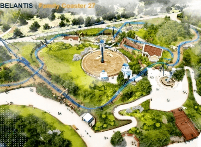 Un rollercoaster familial est d’ores et déjà prévu pour 2027 sur l’actuelle « Plage des Dieux ». Conçu par « un constructeur allemand » (probablement Gerstlauer donc), un premier visuel du projet nous montre des montagnes russes aux décors grecs, ressemblant fortement à Pégase Express ou Mecalodon.