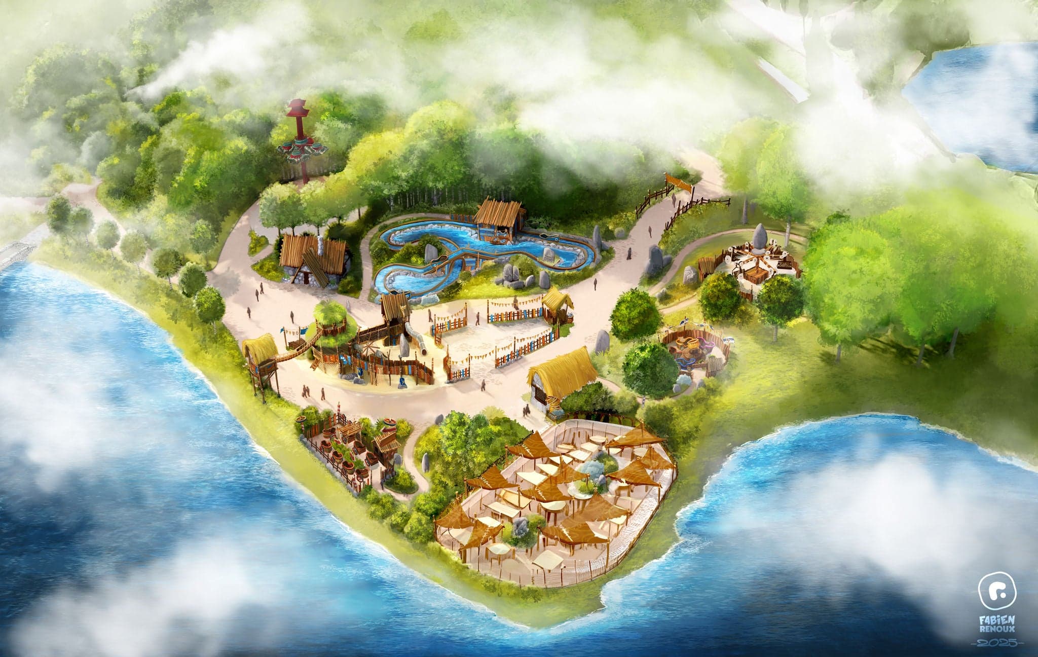 Un rollercoaster familial est d’ores et déjà prévu pour 2027 sur l’actuelle « Plage des Dieux ». Conçu par « un constructeur allemand » (probablement Gerstlauer donc), un premier visuel du projet nous montre des montagnes russes aux décors grecs, ressemblant fortement à Pégase Express ou Mecalodon.