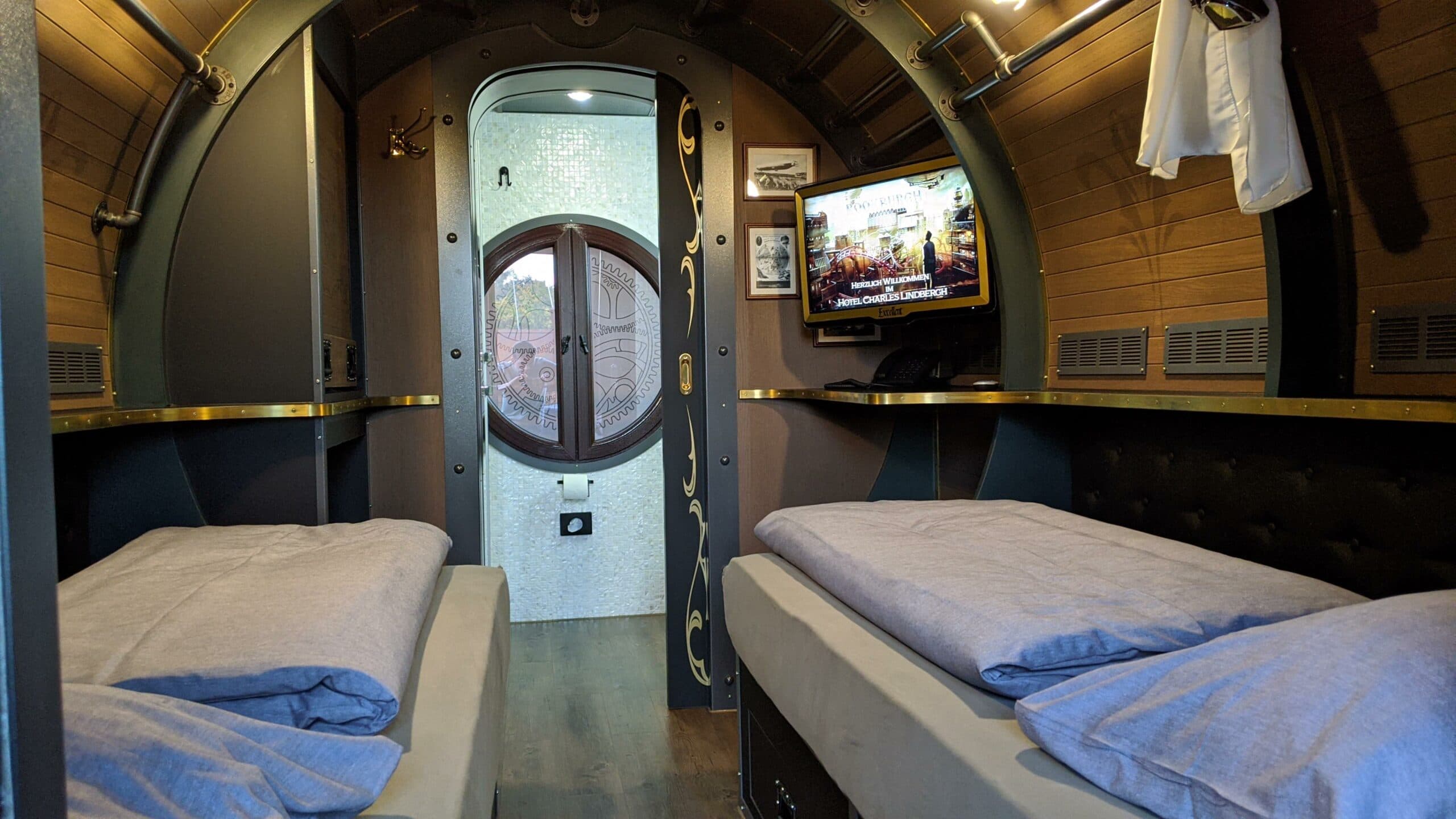 Le nombre de places par cabine sera sans doute regretté par les familles qui lui préfèreront les hôtels Matamba ou Ling Bao. Mais ce n’est pas ici le public visé puisque le lieu n’est accessible qu’à partir de 8 ans et bien qu’il y ait la mention d’Hôtel, le Charles Lindbergh est avant tout une expérience immersive qui va au delà du concept de la nuitée sur place.