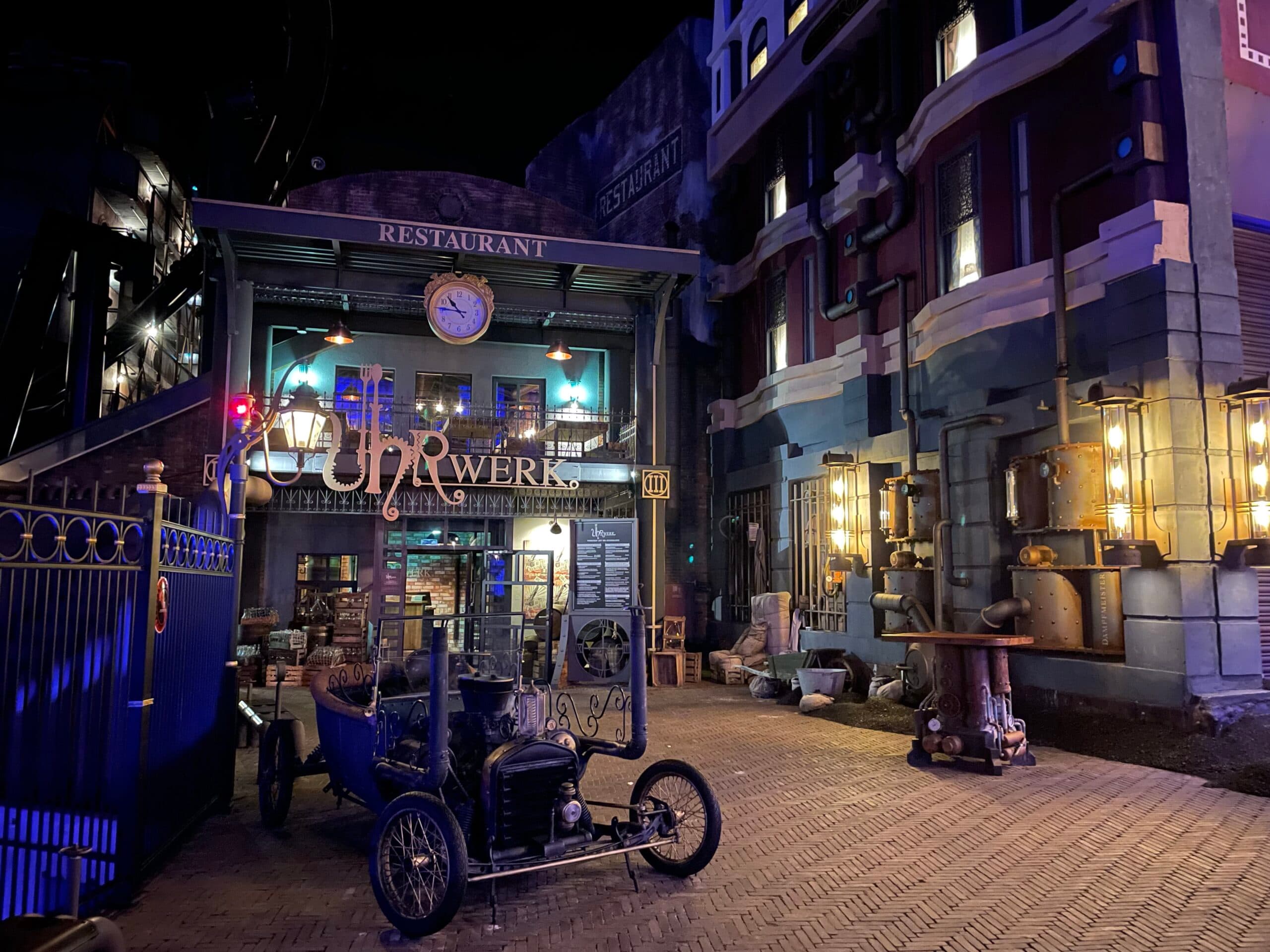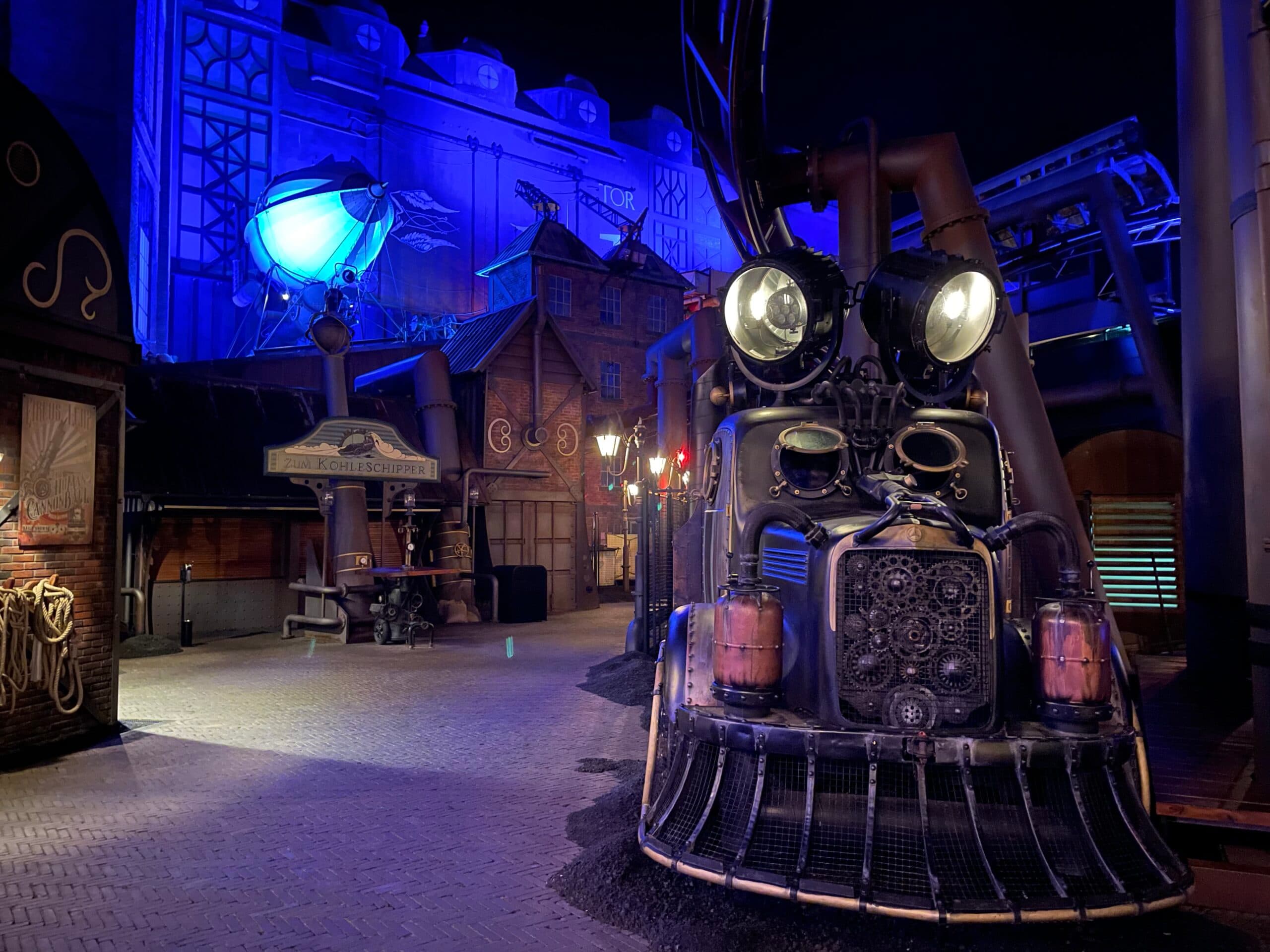 Le sens du détail s’étend jusque dans les toilettes, également thématisées. C’est bien simple, le visiteur ne sort jamais de l’histoire racontée par le Parc ! La transition depuis la rue principale de Berlin permet elle aussi de passer en douceur de la charmante petite bourgade à la spectaculaire révolution industrielle.