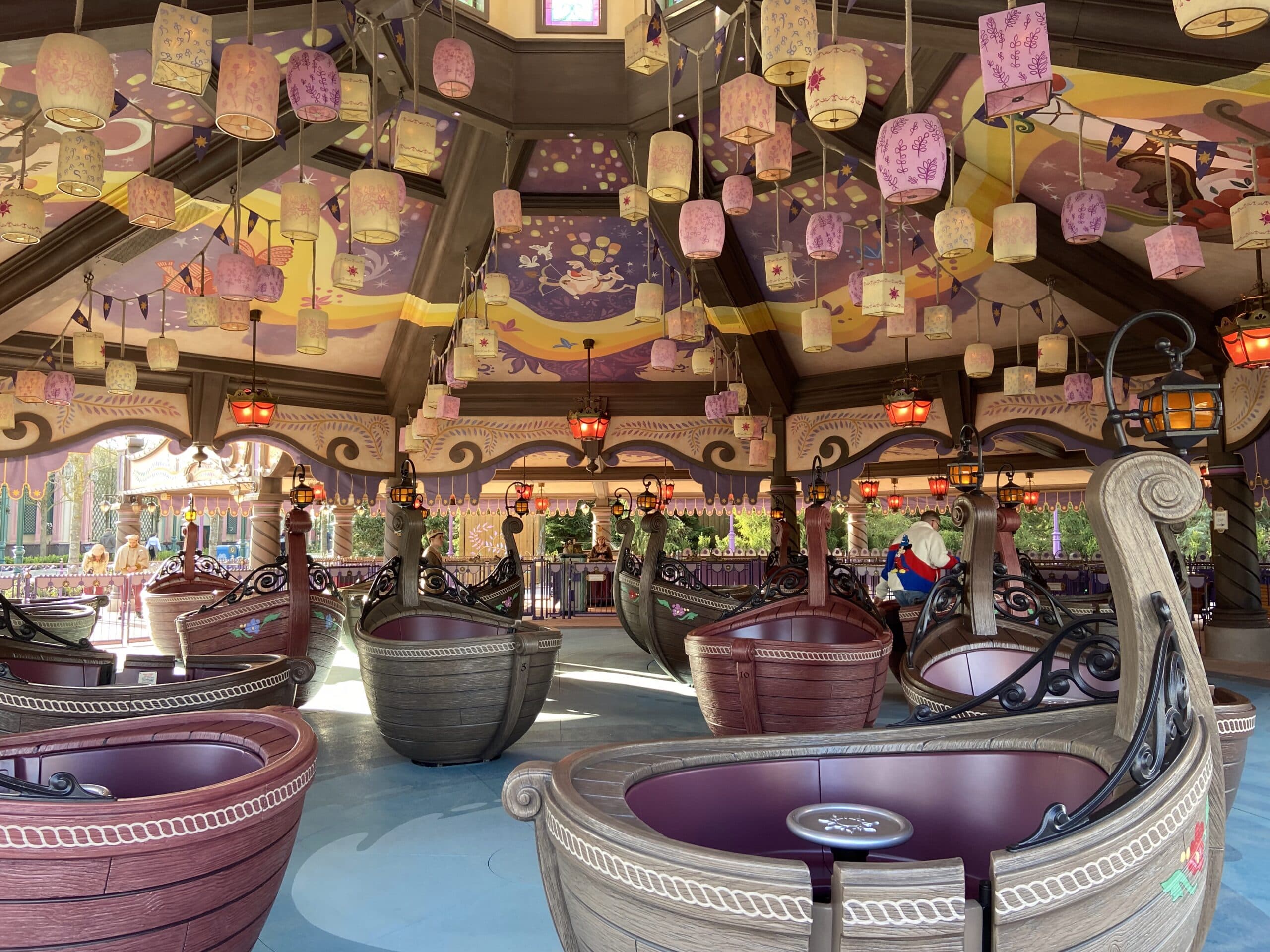 Le plan d’eau bordant l’attraction Raiponce Tangled Spin apporte une bienvenue sensation de fraîcheur à cet espace très dégagé. Bien qu’il s’agisse d’un simple manège de « tasses », force est de constater que la réussite est totale, tant par son esthétique que par sa partition musicale, intégrant l’iconique Danse du Royaume réorchestrée pour l’occasion.