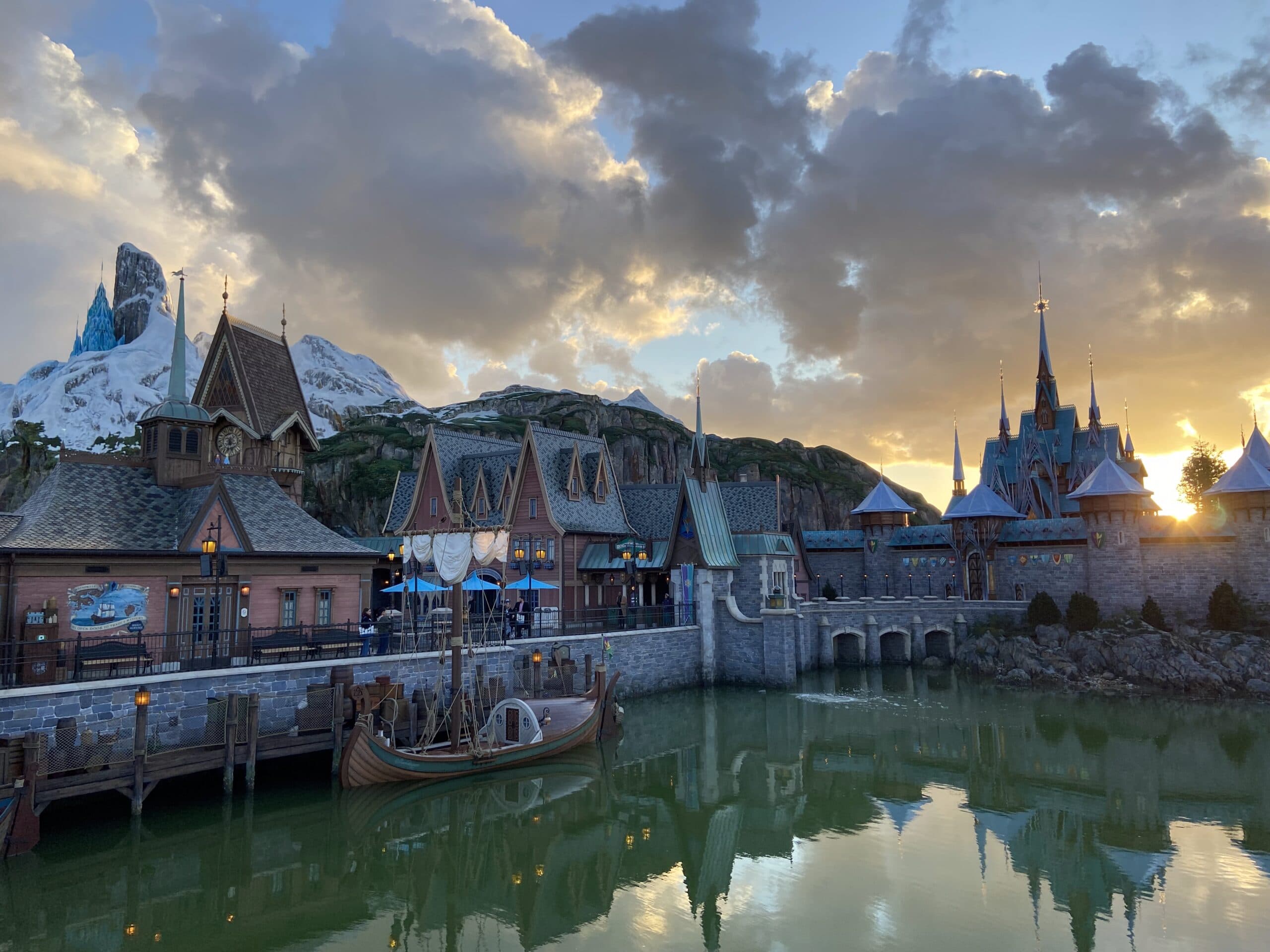 Le clou du spectacle est évidemment la zone dédiée à La Reine des Neiges, annoncée en grande pompe dès 2018. Si l’espace n’est pas très vaste, le royaume d’Arendelle y est reproduit à la perfection. La Tour de l’Horloge trône fièrement au centre de la place, dessinant une formidable perspective avec la Montagne du Nord et son palais de glace juché au sommet. Le niveau de détail de l’ensemble de la zone est remarquable, avec de nombreuses références. Nous conseillons vivement une visite à la tombée de la nuit tant les éclairages sont soignés.