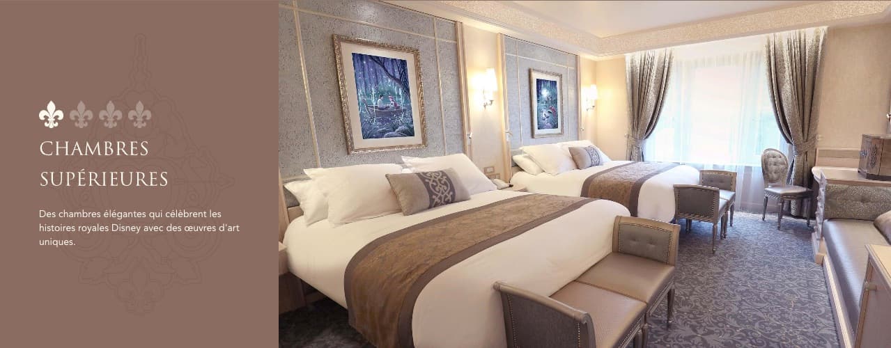Pour offrir un séjour inoubliable à ses occupants, le Disneyland Hotel proposera tout un ensemble de chambres totalement transformées. Au cœur de celles-ci, les princesses Disney de tous les horizons. Raiponce, la Reine des Neiges, Belle et beaucoup d’autres seront représentées par touches plutôt discrètes comme des cadres, des meubles ou des couleurs. Chaque chambre aura une ambiance propre et dédiée à une seule princesse.