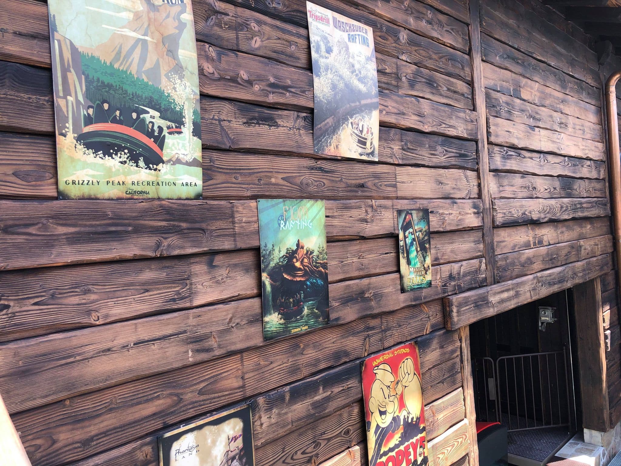 Premier détail qui fera sourire les fans de l’industrie des parcs à thèmes : de nombreux posters d’autres attractions aquatiques décorent la façade du chalet (Grizzly River Run, Popeye & Bluto’s Bilge-Rat Barges, etc…). Un joli clin d’œil qui n’est pas sans rappeler l’initiative d’Europa Park qui avait fait de même en affichant un poster Grizzly River Run au niveau de son Fjord-Rafting.