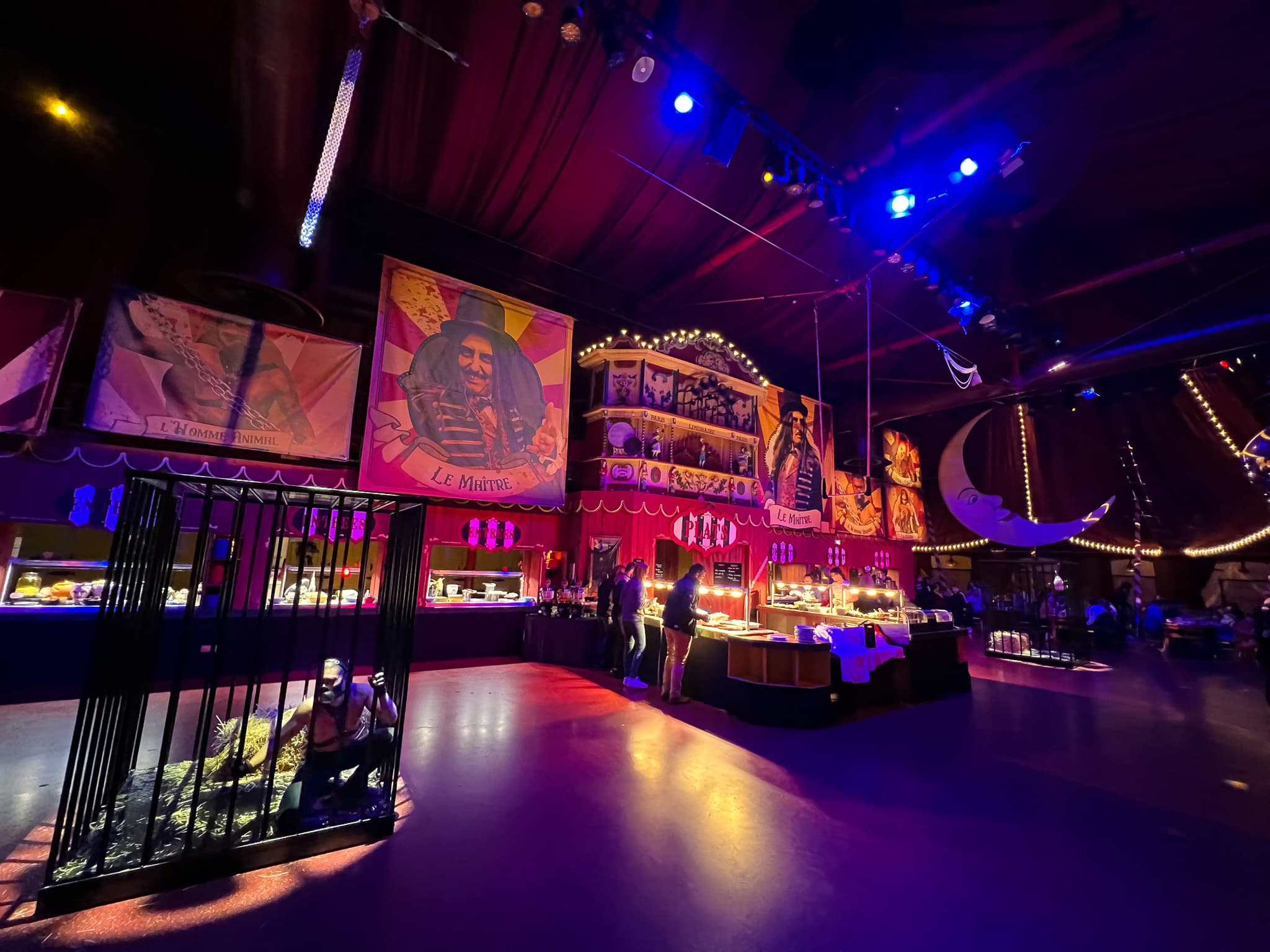 Autre saison et autre expérience culinaire : lors de Peur sur le Parc, le restaurant Le Cirque se transforme en « Buffet de l’Horreur » avec des spécialités Halloweenesques et autres étranges personnages : un étrange « monsieur loyal » surnommé Le Maître, un clown cannibale, une mystérieuse medium ou encore un homme-animal enchainé. Fort heureusement, l’épouvante n’est pas dans l’assiette puisque les plats proposés s’avèrent également rudement bons, malgré des présentations épouvantables.