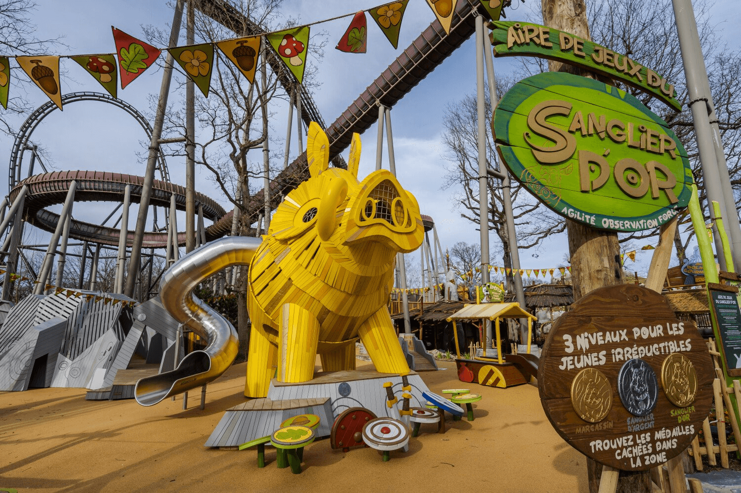 Certains visiteurs du parc ne seront malheureusement pas encore assez grands pour profiter de Toutatis, mais les gaulois ont pensé à eux en leur offrant la plus grande aire de jeux du parc ! L’espace « Le Sanglier d’Or » propose une adorable décoration qui ravira les enfants avides de batifolages. Différentes activités, comme des toboggans, murs d’escalade et filets, permettent aux enfants entre 3 et 10 ans de se défouler et d’eux aussi tester leur courage.