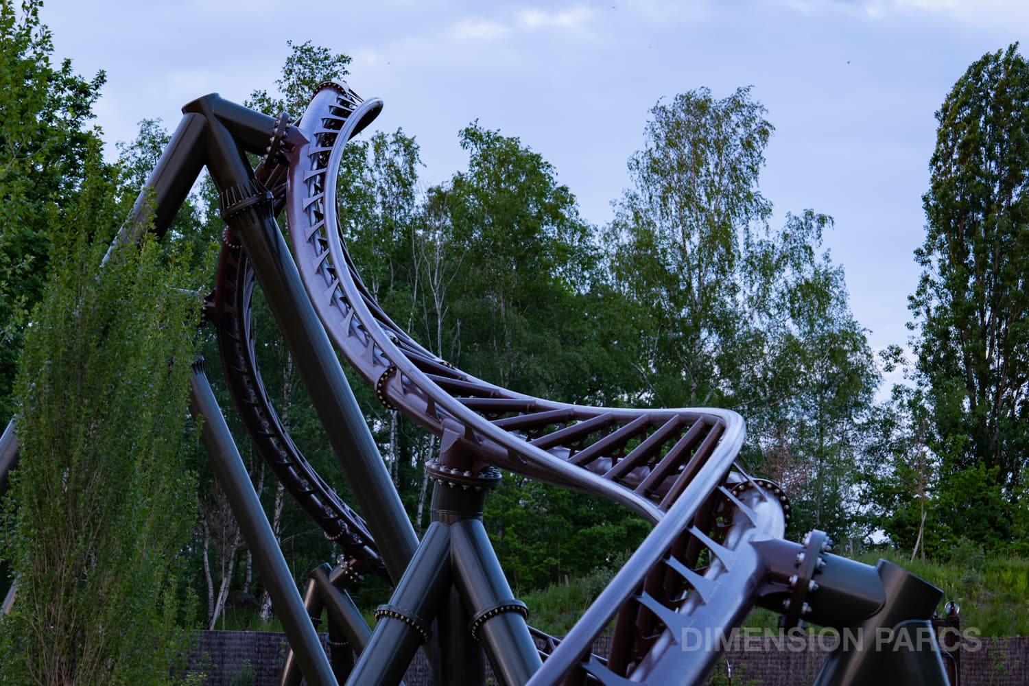 Les 1328 mètres de parcours se composent de 32 figures différentes, dont 3 inversions, aussi bien dans les hauteurs qu’au ras du sol. Si l’environnement protégé dans lequel se situe le parc ne permet pas aux rails de dépasser 45 mètres (le haut des ailes d’Astérix sur son rocher), les concepteurs ont rusé en enterrant de quelques mètres les sections les plus basses du circuit, créant ainsi un dénivelé de 51 mètres. Résultat : un vertigineux top hat dont la pente est inclinée à 101°.