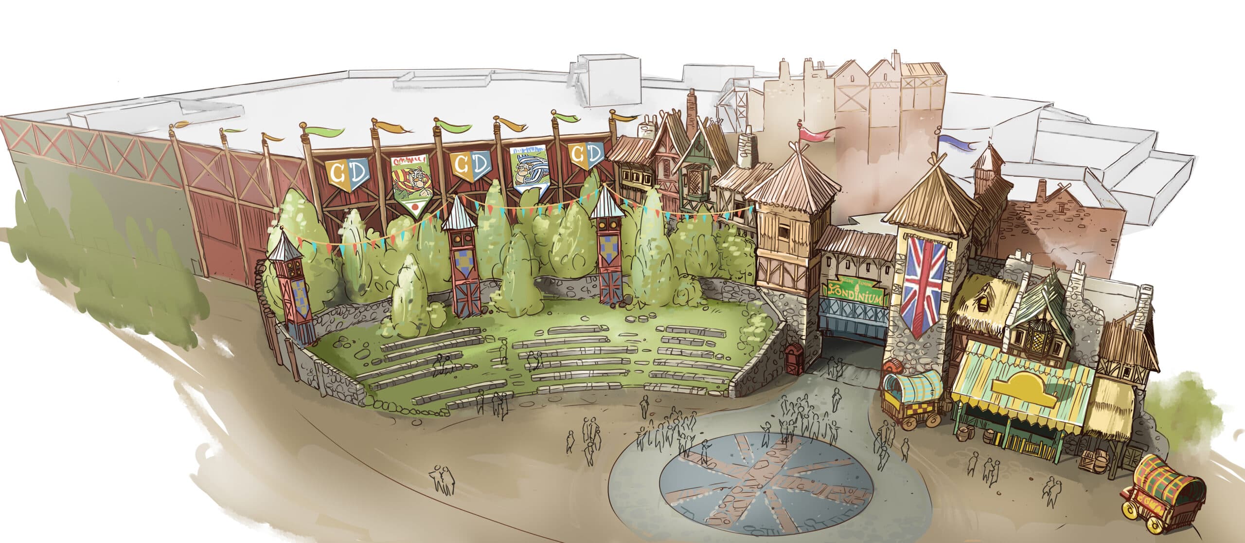 Cet espace fera partie d’une plus grande zone intérieure dont l’accès se fera depuis la place Piccadilly Circus, au rez-de-chaussée, sous la file d’attente du coaster à l’étage. L’objectif sera de l’utiliser pendant les événements Peur sur le Parc et Noël Gaulois.