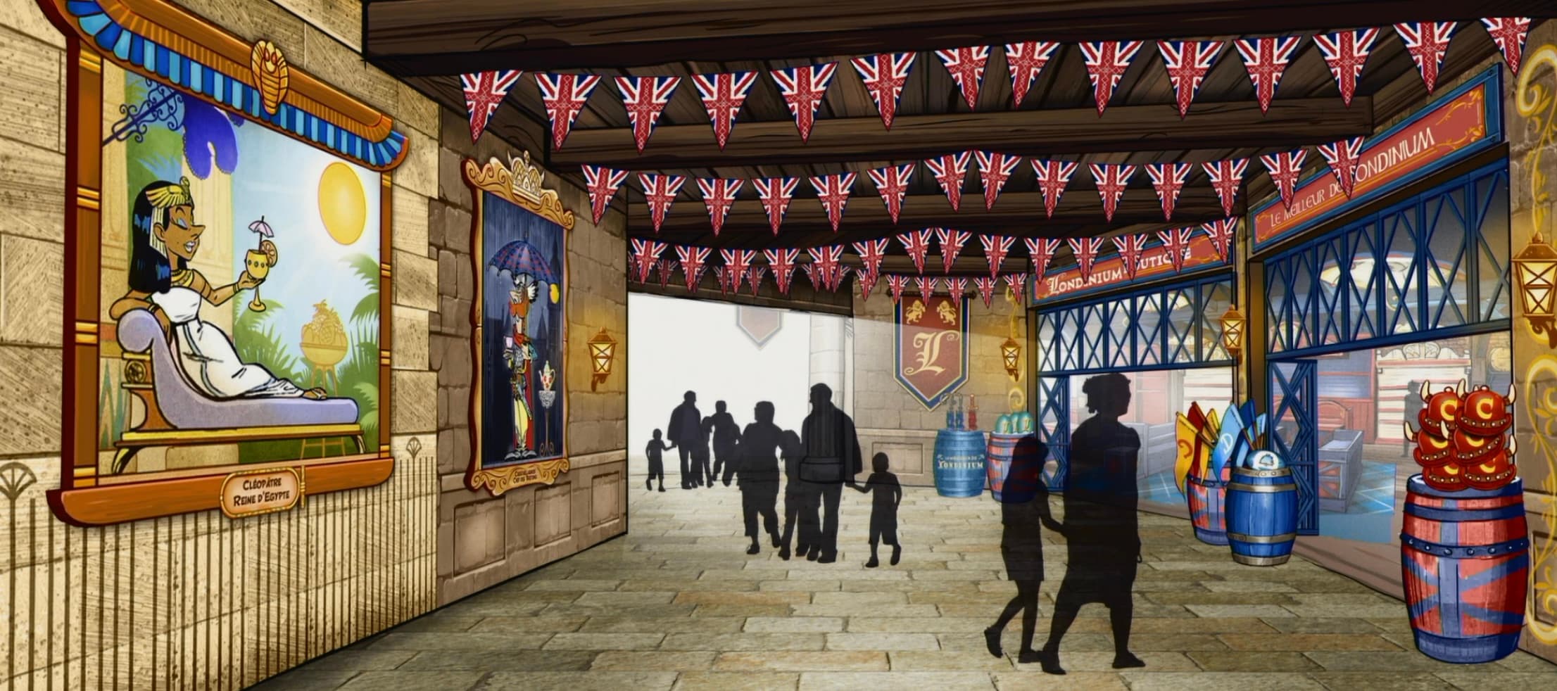 On quitte Paris pour une autre capitale européenne célèbre : Londres, ou plutôt Londinium à l’époque des Gaulois. C’est en effet dans l’univers de l’album Astérix chez les Bretons que seront plongés les visiteurs en explorant cette nouvelle zone thématique principalement en intérieur.