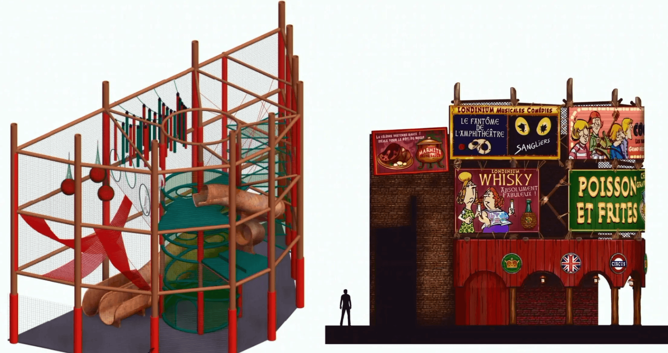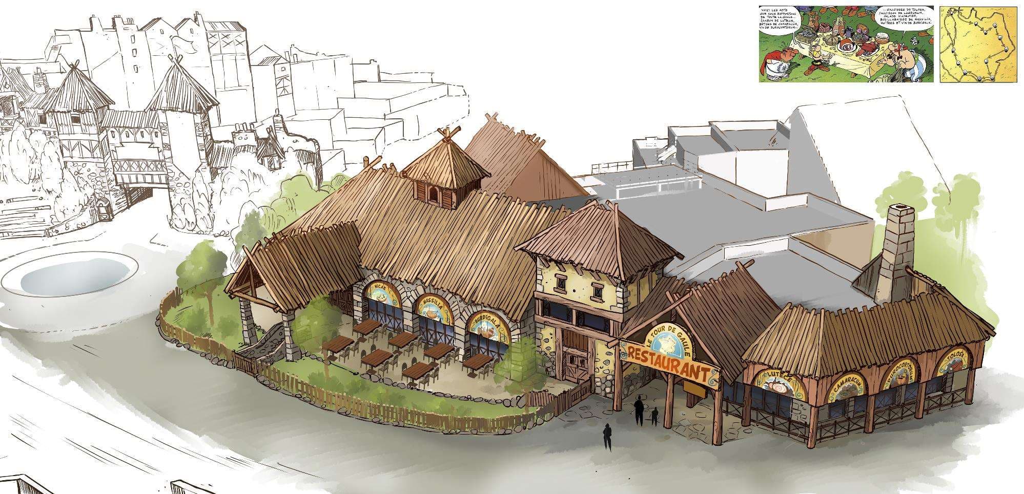 Autre gros morceau du projet, même s’il, à proprement parler, ne fait pas partie de la zone Londinium : le remplacement total du Restaurant du Lac ! Dites au revoir aux fruits géants faisant référence aux œuvres du peintre Arcimboldo, car le bâtiment sera démoli pour faire place à un nouveau à la thématique gauloise nomme « Le Tour de Gaule ».