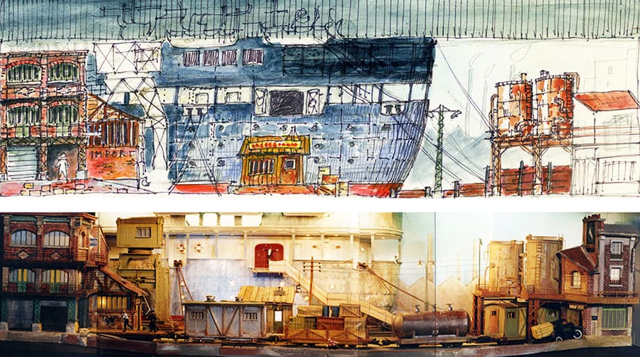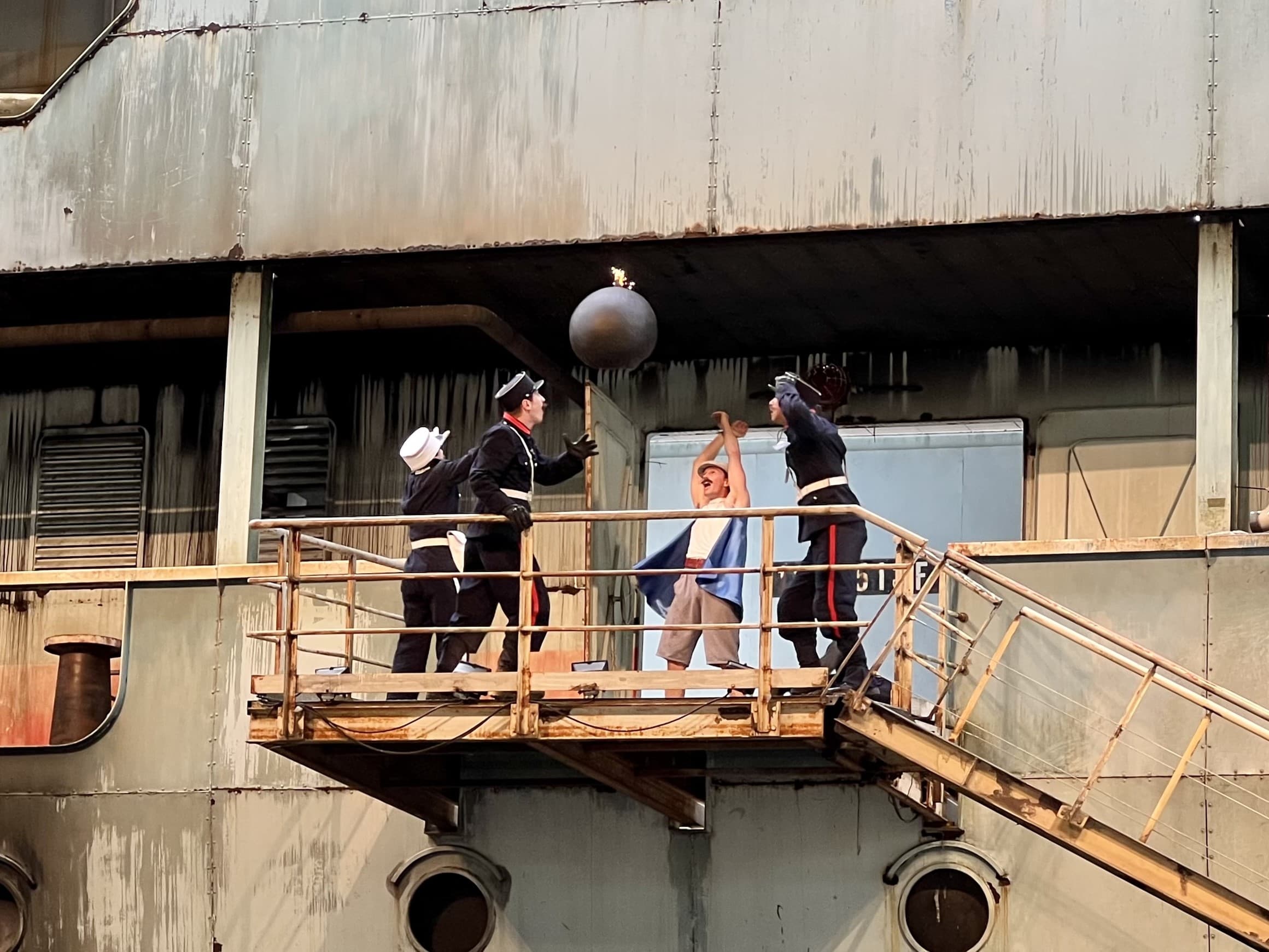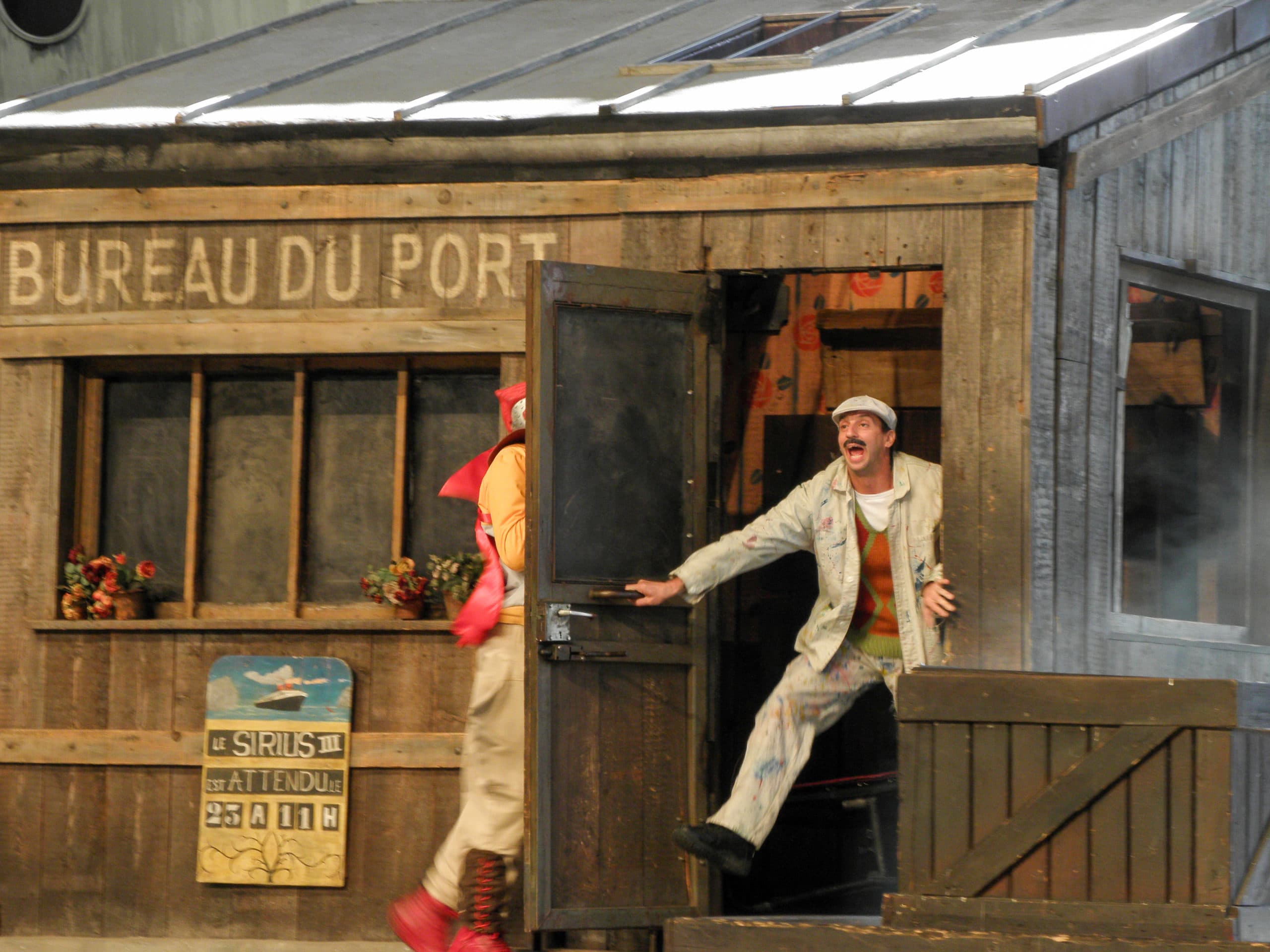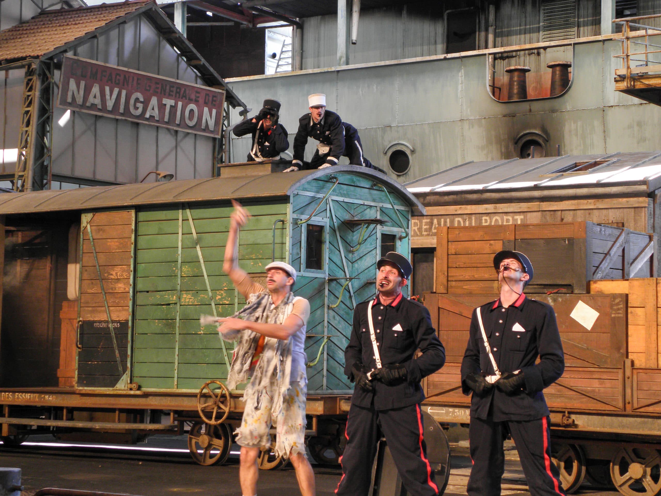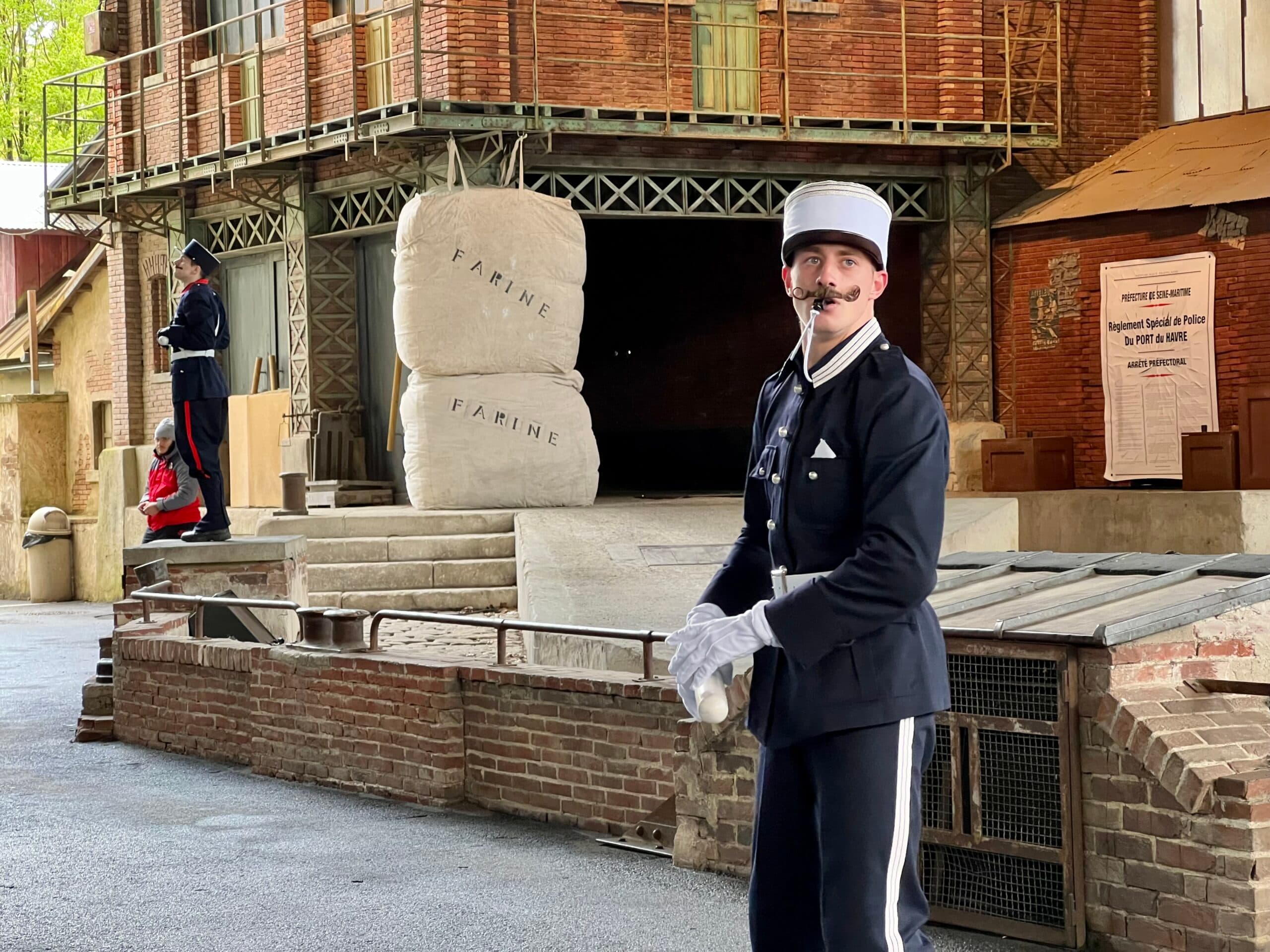 Dans une paisible ambiance maritime, avec en toile de fond le paquebot Sirius III, les visiteurs découvrent l’énigmatique Marcel venu retoucher la peinture de l’hôtel du port. Une brigade de quatre gendarmes se prépare également à proximité car, après quelques minutes, un convoi ferroviaire transportant une camionnette blindée « musée du Louvre » arrive !