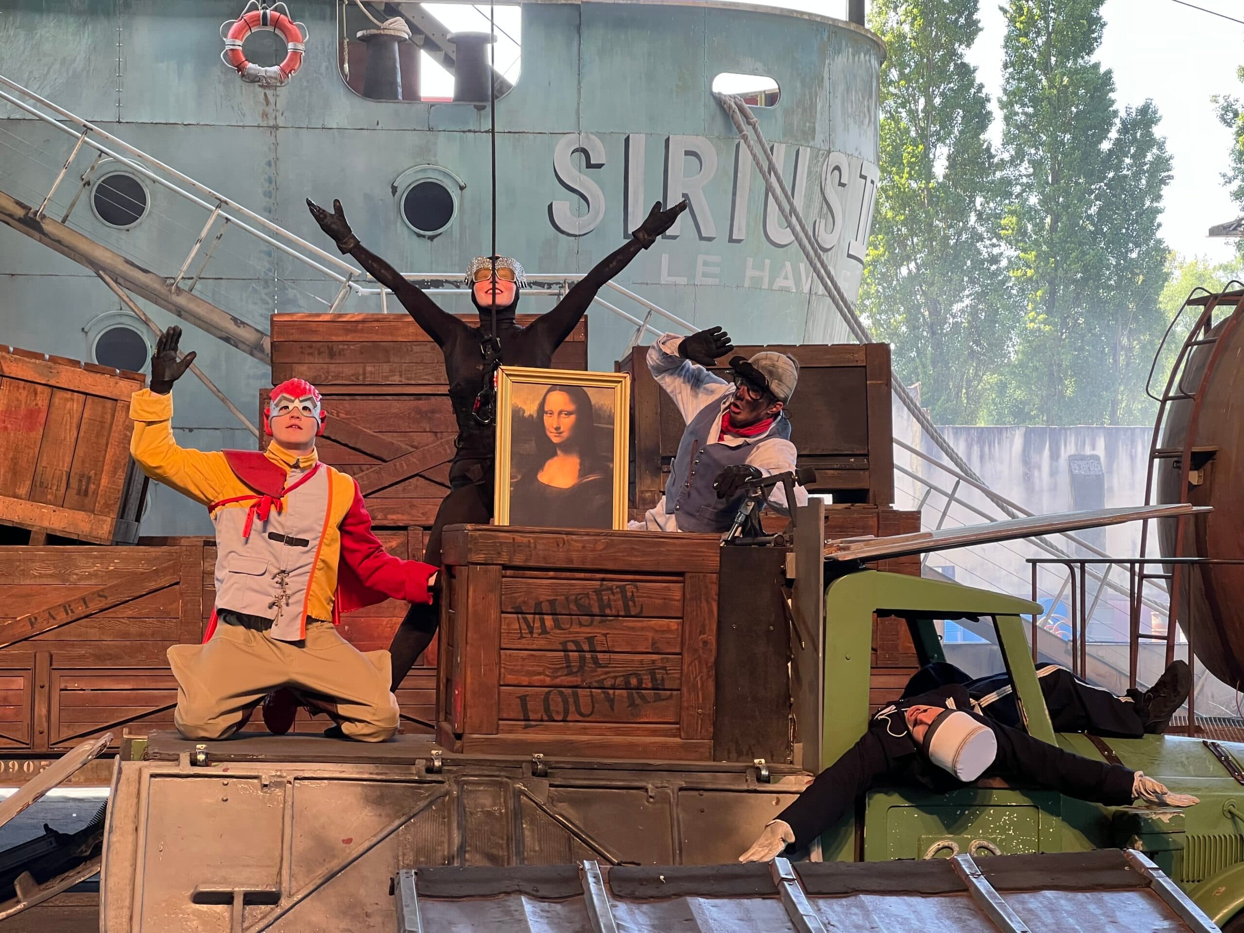 L’objectif est simple : rendre le public heureux, sans superflu. Main basse sur la Joconde est un spectacle de cascades, mais ne se transforme pas en une démonstration de force pour autant. Ce n’est pas non plus une démonstration technologique avec des effets spéciaux inutiles. L’action n’est pas interrompue par des dialogues poussifs, ce qui rend en plus le tout très facilement compréhensible par les non francophones.