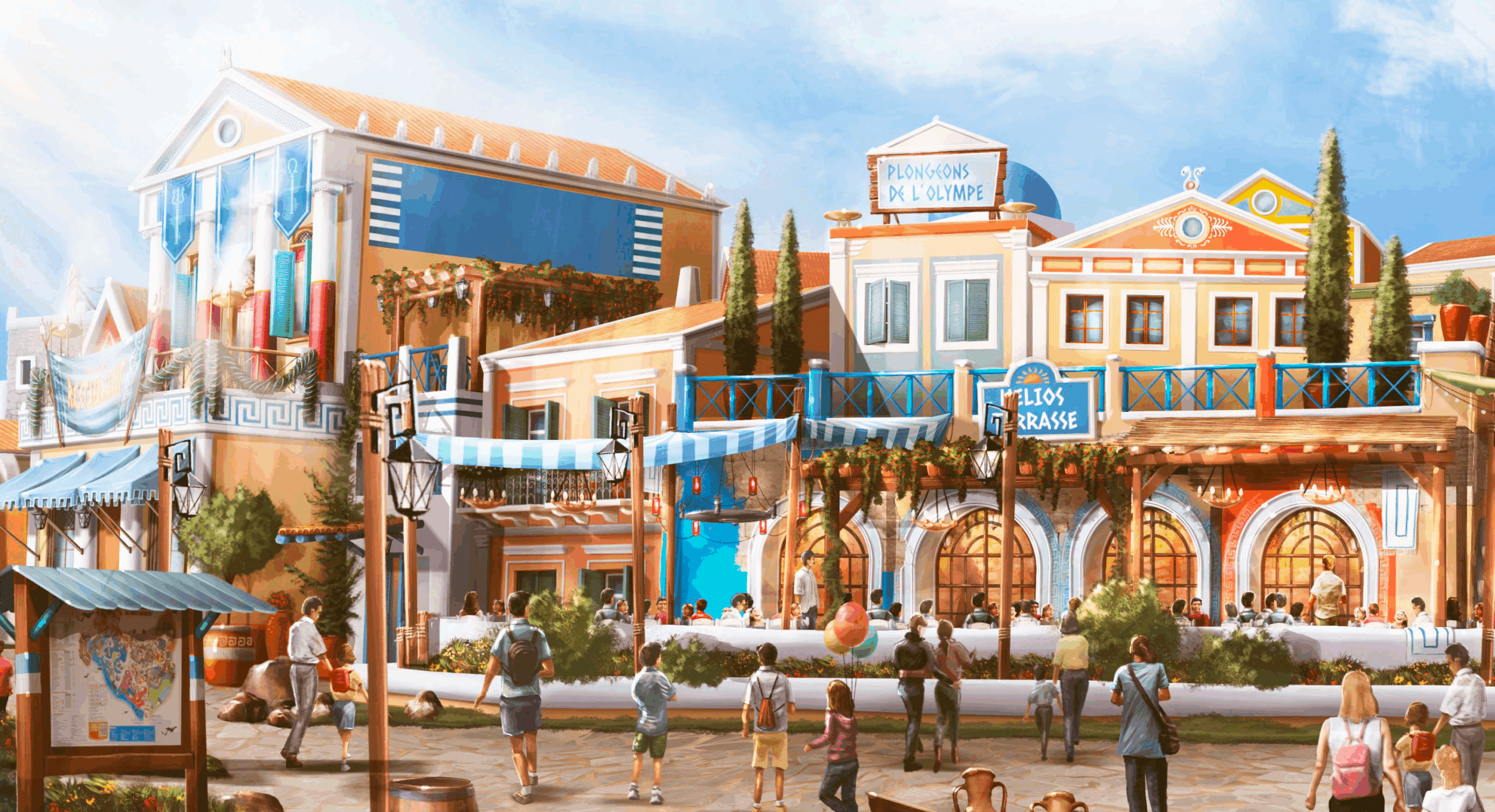 Il se situera en contrebas du pourtour du Théâtre de Poséidon – face au lac – et se composera de plusieurs façades aux thématiques variées (port, cité grecque et marché). Sur place, les travaux de terrassement ont d’ores et déjà commencé !
