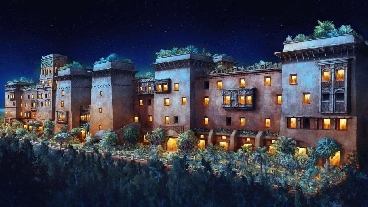 Le bâtiment du futur hôtel s’inspirera des caravansérails. Ces bâtiments fortifiés typiques sont des lieux d’accueil pour les marchands et leurs animaux, avec souvent des magasins au rez-de-chaussée et des chambres à l’étage. Le Parc Astérix reprendra ce principe avec un bâtiment constitué de 4 façades entourant une cour centrale, avec les espaces communs en bas et les chambres dans les étages.
