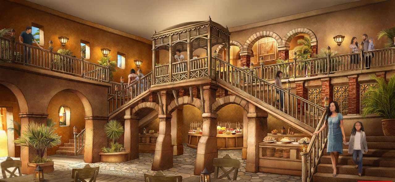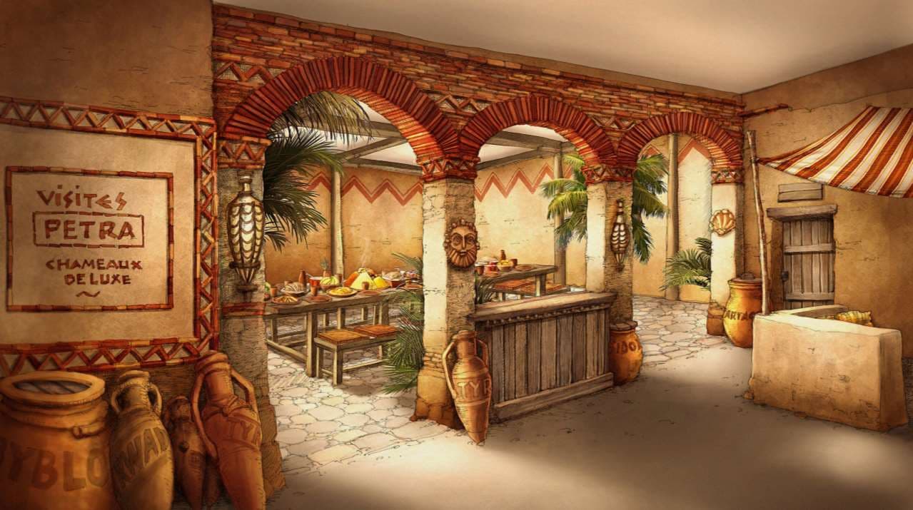 Avec autant de résidents, il faut mettre les petits plats dans les grands pour satisfaire tous les appétits au dîner et au petit-déjeuner. Ainsi, 2 restaurants seront construits, l’un nommé « La Table des Rois », et l’autre sur un thème marchand. Probablement 2 nouveaux incontournables du Parc Astérix, les restaurant des hôtels déjà existants étant déjà de grande qualité.