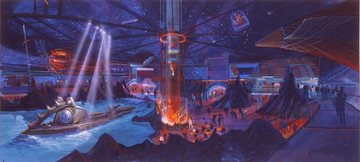 Originellement, Discoveryland devait accueillir le projet Discovery Mountain et inclure certaines des idées précédentes de Tony Baxter – comme le restaurant sous-marin. Là encore, le projet ne fut pas concrétisé à 100% et Space Mountain fut finalement construit en 1995, gardant tout de même le thème de Jules Verne.