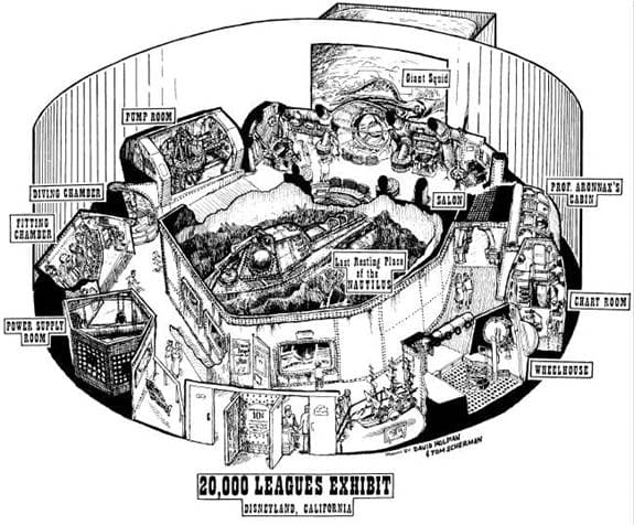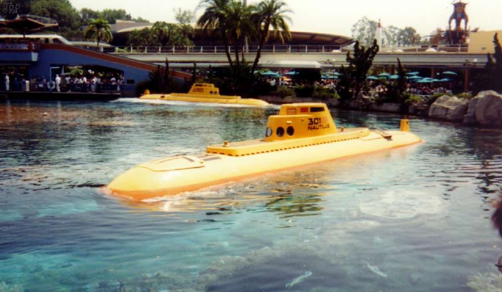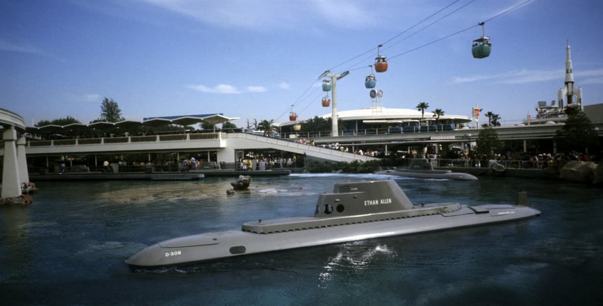 Quelques années plus tard, Submarine Voyage fut inauguré en juin 1959 à Tomorrowland et proposait aux visiteurs une expédition sous-marine en direction du Pôle Nord. L’un des 8 sous-marins était nommé Nautilus, en hommage à l’USS Nautilus (premier sous-marin nucléaire) qui tire lui-même son nom du roman de Jules Verne – la boucle est bouclée. L’attraction était d’ailleurs sponsorisée par General Dynamic – firme ayant conçu l’USS Nautilus. Disney devient alors la première entreprise à avoir une flotte privée de sous-marins.