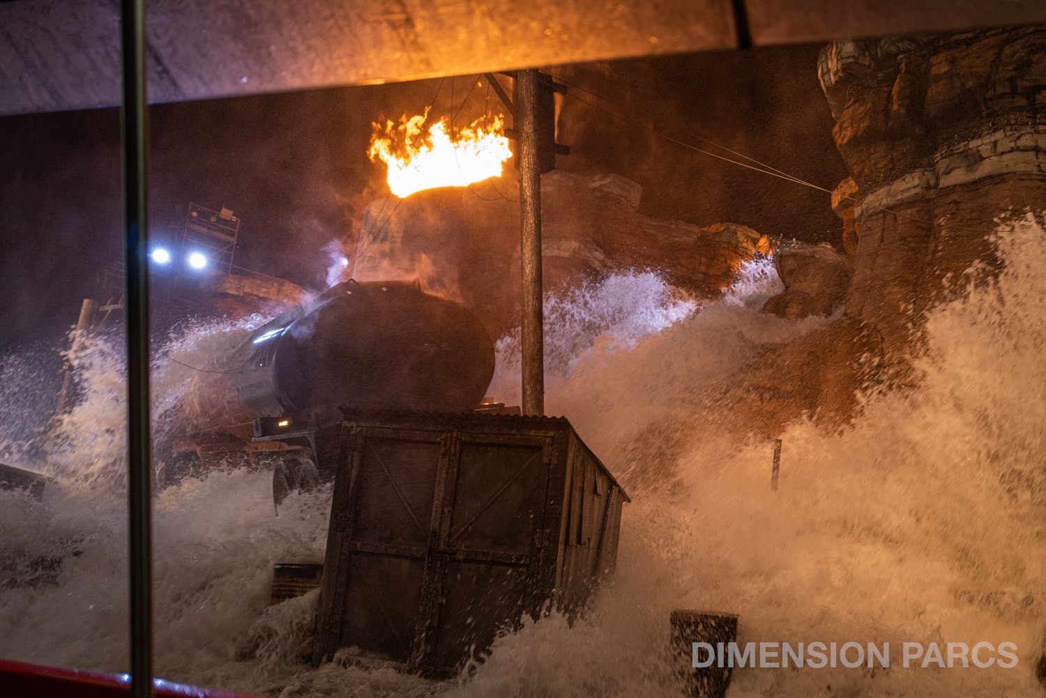 - Une simulation du film Tremblement de terre dans une station de métro, où le tram se fait secouer, un camion-citerne prend feu et tombe vers lui, et des trombes d’eau manquent d’atteindre les visiteurs.