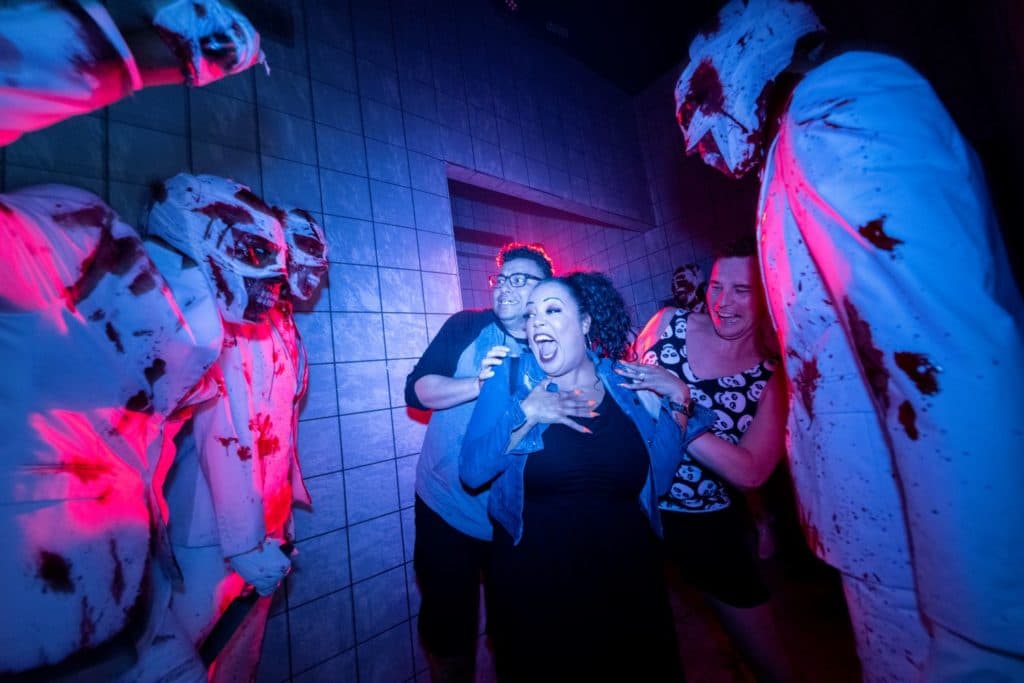 Une haunted house est un parcours à pied vous plongeant dans un univers fictif. Sa particularité est qu’elle abrite de nombreux scare actors, des comédiens dont le seul but est de vous faire sursauter via différents moyens (trappes, angles morts, bruits…). Ces derniers peuvent également être de simples figurants de scènes dérangeantes, vous poussant dans vos derniers retranchements.