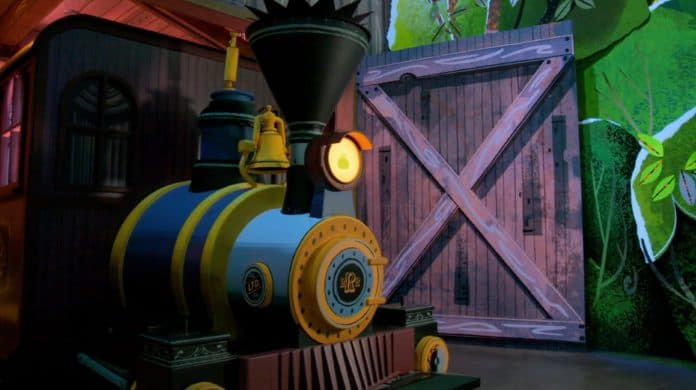 UPDATE 14/12/2019 : de nouvelles images inédites de l’attraction ont été dévoilées lors de l’émission « Disney Channel Holiday Party @ Walt Disney World » avec notamment un aperçu de l’avant de la locomotive que conduira Dingo. Au total, cette nouvelle aventure sera composée d’une dizaine d’Audio-Animatronics et proposera d’expérimenter les premiers effets 2,5D (des effets 3D sans avoir besoin de lunettes).