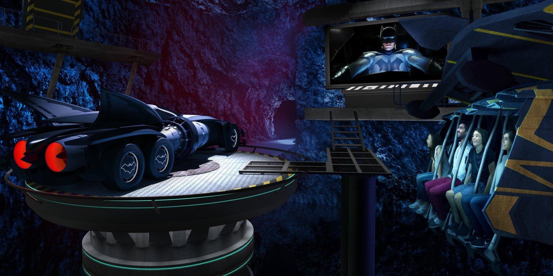 La seconde zone reproduit les allées sombres et étroites de Gotham City, rattachée à Batman. Les visiteurs peuvent être immergés dans l’univers du Chevlier Noir à travers 4 attractions inédites, dont Batman: Knight Flight, fraichement inaugurée, où les visiteurs peuvent monter à bord d’un BatWing pour découvrir en détails la Batcave, comme le montre cette vidéo :