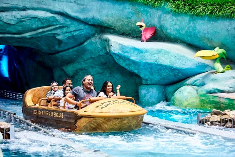 Les fans de la famille Pierrafeu sont également servis avec « The Flintstones Bedrock River Adventure », un flume ride qui se situe dans la zone Bedrock.